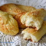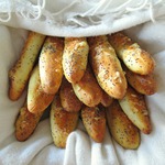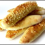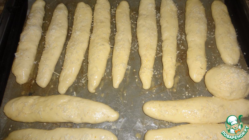 На палочки, Наташа, у меня не очень похоже получилось, но зато получились забавные мини батоны. И вкусные, конечно! Посыпала и кунжутом, и льном.