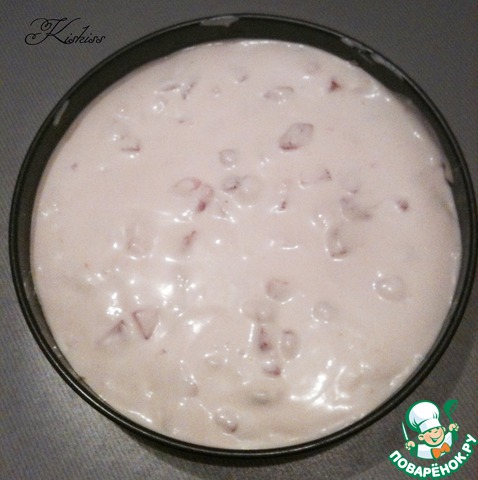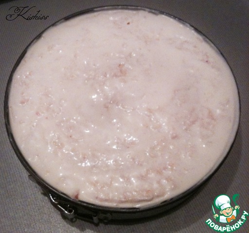 Крем к этому времени уже должен начать густеть. Почти весь крем выливаем в разъемную форму, оставляем совсем немного для следующего пункта.