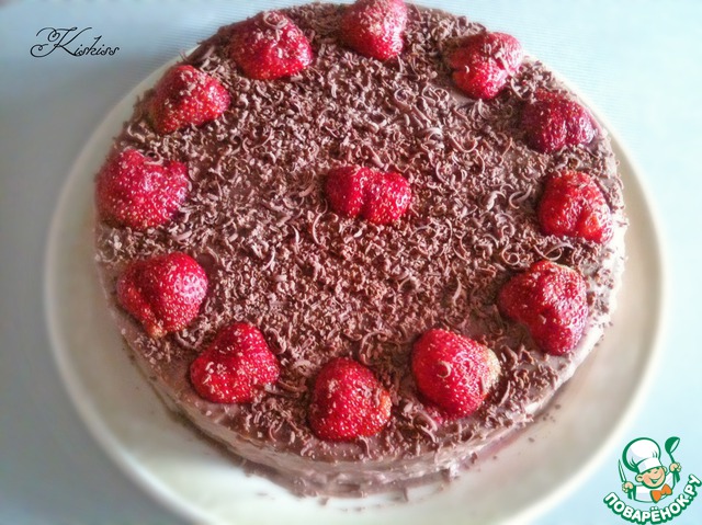 Даем помадке остыть. Отделяем торт от разъемной формы и покрываем его помадкой. Украшаем оставшейся клубникой и тертым шоколадом!