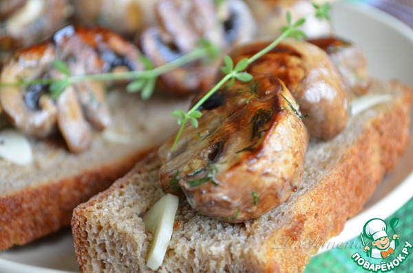 Готовые шампиньоны разложить на хлебе и подавать! Уверена, что с соусами Blue Dragon это будет идеальный союз! -