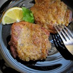 Уложить на противень с антипригарным покрытием и обжарить с обеих сторон до готовности. При температуре 240 градусов я обжаривал отбивные около 17 минут с каждой стороны.