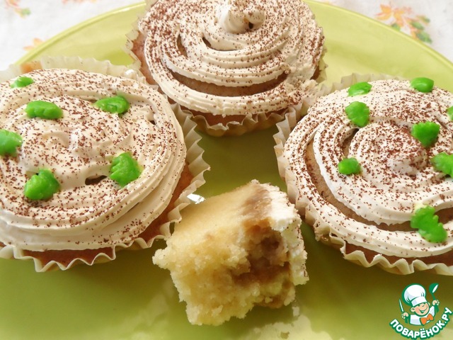 Хоть на сайте и есть много разных вариантов Тирамису, но вариант сервировки в виде капкейков мне нравится, во-первых, своей быстротой исполнения (печется всего 25 минут), а во-вторых, индивидуальной подачей (что актуально, когда в доме много гостей, или когда выезжаешь на природу, и тарелок-ложек на всех не хватает). Заходите, угощайтесь: уж капкейков-то точно на всех хватит!