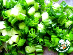 Лук мелко нарезать. Добавить в салатник к остальным продуктам.