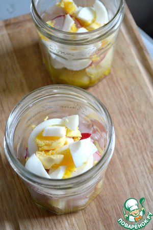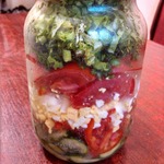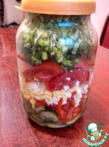Просто нарежьте ваши любимые ингредиенты, сложите их слоями в банку, не забыв при это сделать вкусную заправку.