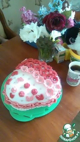 Покрываем торт мастикой белого цвета, выравниваем и разглаживаем руками или специальным утюжком.