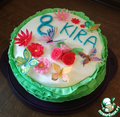 Покрыть торт масляным кремом. И поставить в холодильник, чтобы крем застыл.