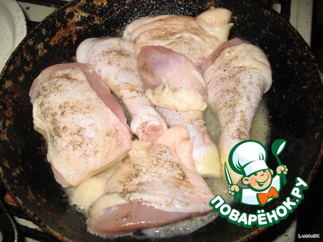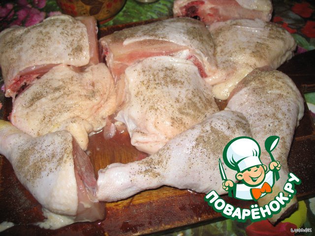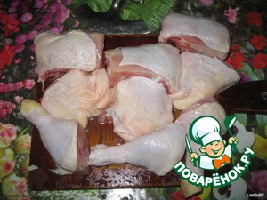 - Окорочок куриный (можно заменить любыми частями курицы) — 3 шт