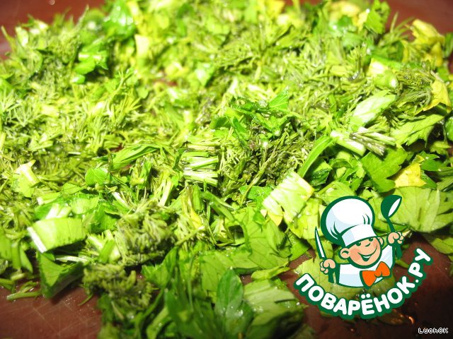 Зелень измельчить и добавить минут за 10 до окончания тушения.
