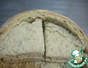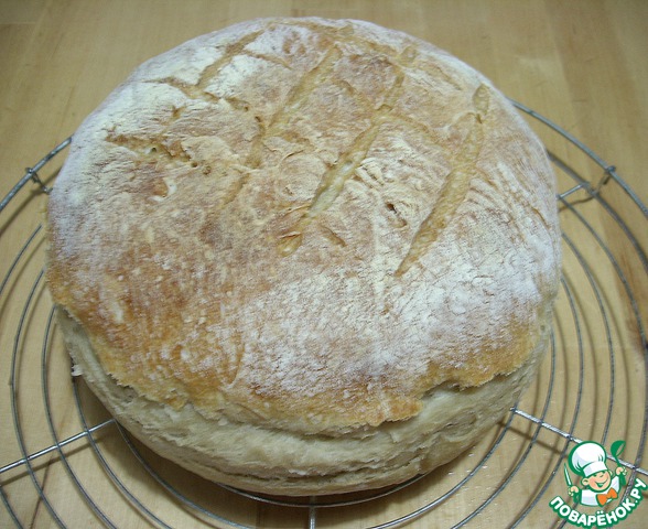Духовку разогреть до 200 гр, на будущем хлебе сделать разрезы острым ножом, выпекать 50-60 минут. Оставить остывать на гриле. Хлеб может быть приготовлен и по другому рецепту.
