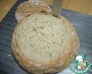 С помощью ножа для хлеба вырезать вертикальный цилиндр вдоль корочки.