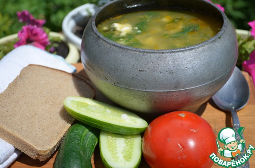 Я уже упоминала, что на пикникак мы обязательно варим супы - будь то уха, крупяные супы с тушенкой. Но весной, либо ранним летом, это супы обязательно из "зеленки". Сегодня предлагаю Вам попробовать суп из крапивы с сыром. Почему пастуший? Думаю, что у пастухов, зачастую, кроме пары картофелин и куска сыра с собой ничего и не бывает, а кушать, особенно горяченького супчика, хочется всегда...