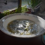 Вареную крапиву порезать помельче, большие "былки"-выбросить. Можно даже, я думаю, проблендерить, но у меня сегодня не было электричества полдня - получился настоящий полевой суп)))