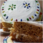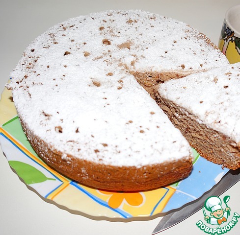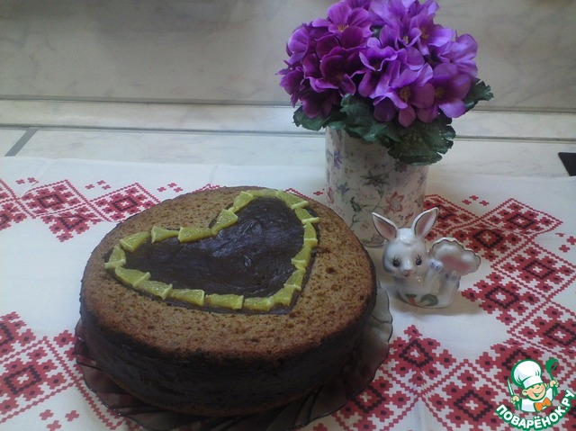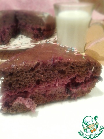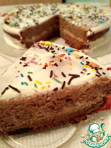 И полила сверху готовой покупной глазурью. Вот и все. Пирог получается мягким, срочным, что можно его даже ничем не прослаивать и не украшать. и даже, если вы прослоите обыкновенным вареньем-будет очень-очень вкусно. попробуйте!