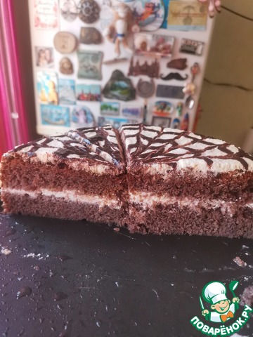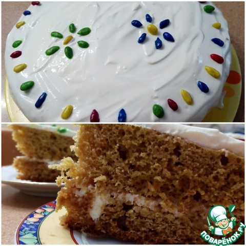 Время готовки, правда, у меня получилось в два раза больше, но бисквит очень нежный, пористый) Промазывала заварным кремом