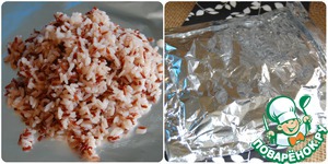 Смесь риса сварить по рецепту на упаковке, затем отцедить. Взять лист фольги, выложить на него рис, закрыть вторым листом фольги и свернуть края. В таком виде рис легко разогреть на решетке-гриль перед подачей.