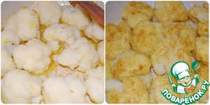 Выложить соцветия цветной капусты, обжарить их в течение 2-3 мин на небольшом огне, после чего снять сковороду с огня и охладить.