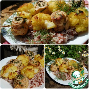 Рецепт «Шашлык с цветной капустой и рисом»:
