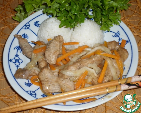Вот и все, свинина по-китайски готова. В качестве гарнира отлично подойдет яичная лапша или отварной рис.