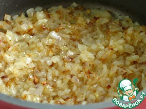 2. В то время, пока баклажаны взаимодействуют с солью, нарезать лук и обжарить его на растительном масле до золотистого цвета.