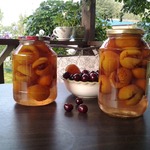 Рецепт очень прост в приготовлении. Мне больше хотелось донести именно ИДЕЮ заготовки. Внутри абрикоса - вишня, но я делала и с виноградом и с крыжовником и с четвертинкой грецкого ореха и немного меда. Можно использовать как просто десерт или по одному абрикосу в начинку для пирожка или в заливной пирог. Откусываешь пирожок с абрикосом - а там ещё и вишенка м-м-м вкусняшка. Жидкость использовала для пропитки бисквита. В общем нет предела фантазии.