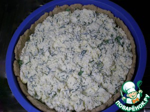 Форму с подпеченной основой достать из духовки, разложить в ней творожную начинку.