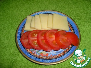 Выложить в "формочку"ломтики помидора поочередно с ломтиками сыра. Слегка посолить и поперчить (перец - по желанию, в рецепте он есть, но я не делаю)