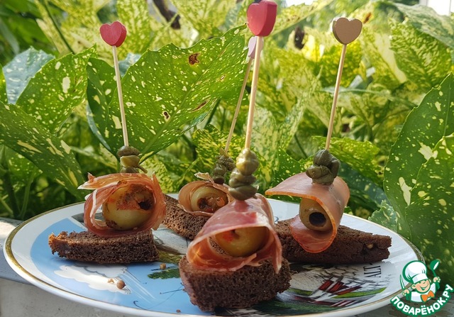 Это канапе идеально подходит на закуску крепких спиртных напитков. :)