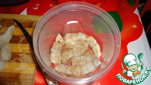 Берем любой контейнер с крышкой подходящий для вашего количества рыбы и начинаем укладывать слоями: