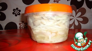 Убираем в холодильник на ночь. Пусть настоится, промаринуется и впитает в себя эти чудесные ароматы и вкусы, а лимонная кислота размягчит ее и сделает мягкой, но упругой. -