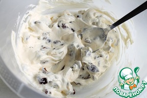 Затем добавляем к творогу изюм, хорошенько перемешиваем ложкой.