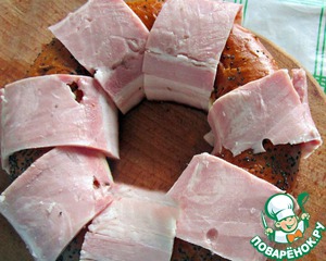 Если кусочки бекона слишком короткие (покупали цельный кусочек бекона, а не полосками), то можно спрятать кончики в середину среза и обмотать, таким образом, только верх.