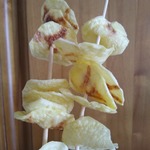 Да, чуть не упустила, готовые "чипсы" аккуратно снимаем, слегка прокручивая шпажку. ПРИЯТНОГО АППЕТИТА!