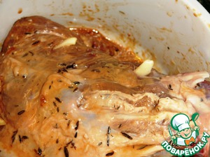 Хорошо промазываем рульки маринадом со всех сторон и оставляем мариноваться. Минимум на 1 ч., максимум - 2е суток.