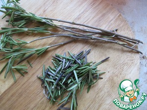 Веточки розмарина очистить от лишних листочков, намочить в воде.