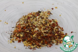 • Взять любимые специи (баранина любит, когда в нее добавляют кориандр и зиру, я добавила смесь кавказских специй), смешать с оливковым маслом, натереть каждый кусочек.