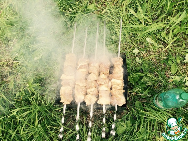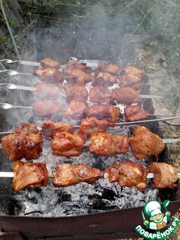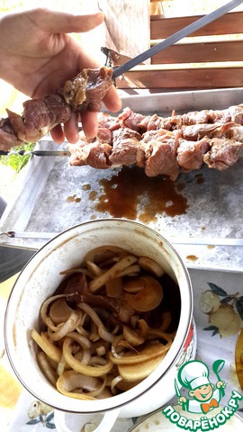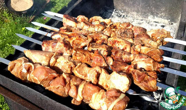 К сожалению, ни вырезк, и ни шейки не оказалось в магазине, и пришлось покупать к шашлыку свиную лопатку. мужчина у меня в доме есть и он тоже умеет готовить, этот шашлык - исключительно его творчество, раньше никогда не пробовала подобный, делюсь с вами очень простым рецептом прекрасного нежного мяса!