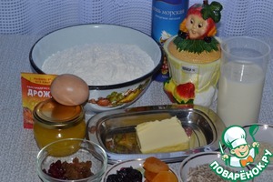 Заложить в ведерко ХП дрожжи, муку, соль, сахар, масло, яйцо и молоко. (Продукты закладывайте согласно инструкции к Вашей ХП).