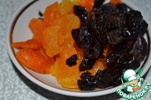 Курагу и чернослив помыть, обсушить и мелко порезать.