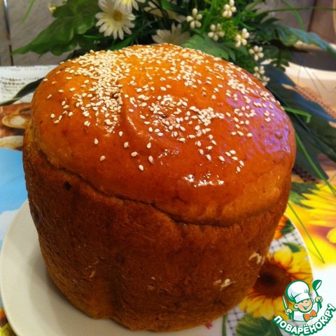 Посыпаем кунжутом. Хлеб обязательно полностью остудить. Тогда верхняя корочка не будет липнуть, а станет очень мягкой и ароматной.