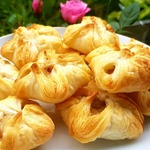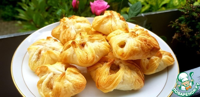 - Тесто слоеное бездрожжевое (домашнее или готовое по желанию) — 500 г