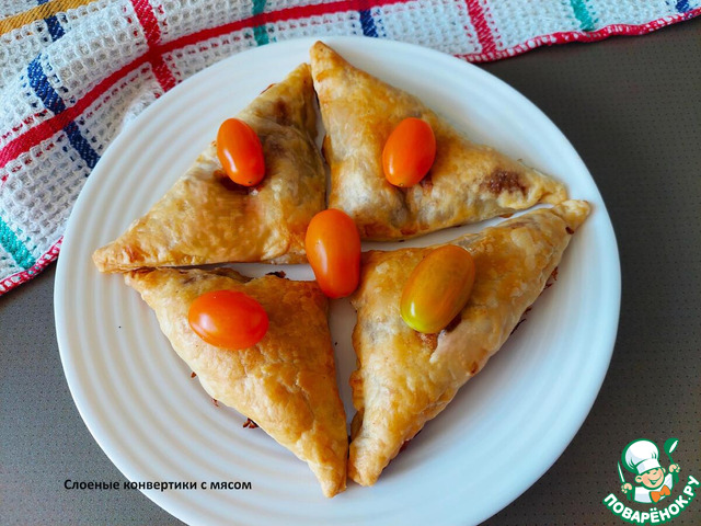 Ингредиенты для «Слоеные конвертики с мясом»: