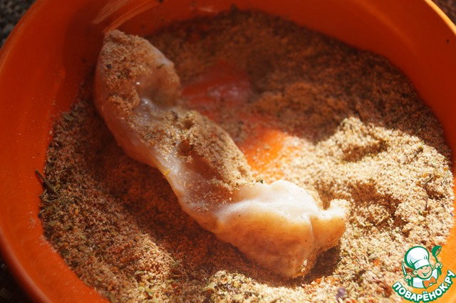 Обваливаем наши куриные "палочки" в панировке и...