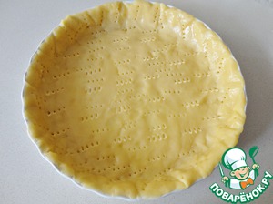 Укладываем тесто в форму для тарта диаметром 24 см. Излишки теста можно завернуть и хранить в холодильнике в течение недели.