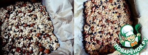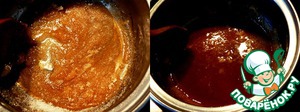 - Сварить сахарный сироп – растопить первую часть сахара, затем добавить воду и всё быстро перемешать - залить гранолу.