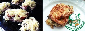 Сыр натереть на мелкой тёрке, обильно посыпать мясо.