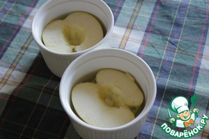 • В это время в рамекинах размягчаем яблоко: на полной мощности 2 минуты (у меня 800 Wt)