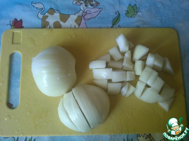 Лук чистим и режем.