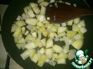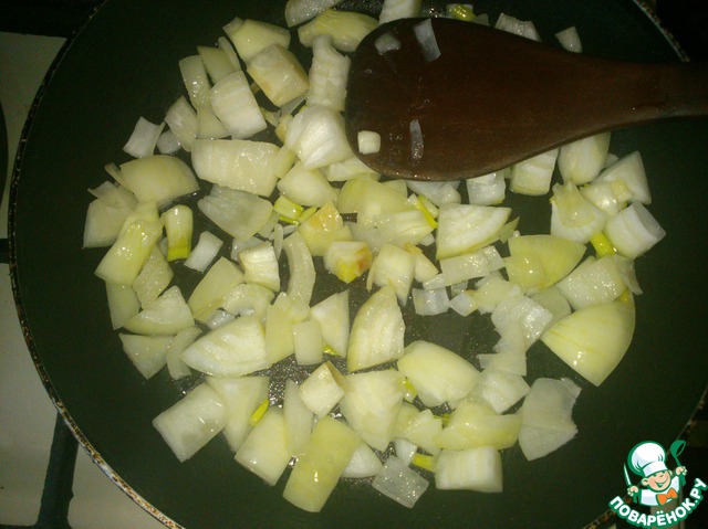 Лук нужно обжарить на сковороде до золотистого цвета.