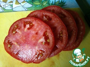 На тесто сначала кладем помидоры.