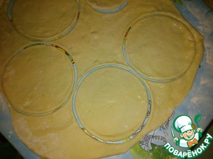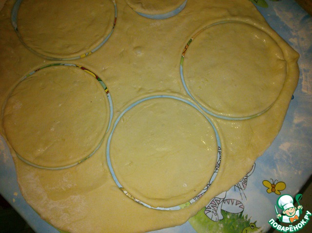 Вырезаем маленькие лепешечки диаметром примерно 15 см.